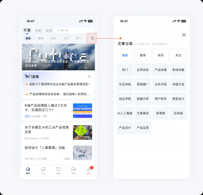 各平臺基本都有自己獨立的設計體系,有自己定義的組件和組件庫,學習組件要了解它分為基礎組件和業(yè)務/高級組件兩種類型。基礎組件是一種底層組件,例如輸入框、按鈕、單選框;其特點是比較獨立單一,通用性很強,適應各種業(yè)務場景;業(yè)務組件是一個基礎組件集合而成的大組件,也可以叫高級組件,是復合型的區(qū)塊組件,主要是針對解決業(yè)務問題;如下截圖是flomo筆記用用的網(wǎng)頁版本,以它的首頁為例;頁面按照左右結構類型區(qū)分,可以定義為兩個大的業(yè)務組件,由淺入深,可以再細分,得到再定義更多的業(yè)務組件,這里,我以“發(fā)布筆記”的組件具體說明下,它是怎么組成來解決業(yè)務問題的;首先我們拆解下組成部分:文本內容,工具按鈕(添加標簽和圖片、文本編輯、快速引用等三種類型),發(fā)布按鈕。用戶發(fā)布筆記的行為主要為文字輸入-內容編輯-發(fā)布完成;結合用戶行為和組件設計,解決了用戶輸入文本內容,給筆記歸納,增加圖片,修改文本樣式,快速引用,最終進行發(fā)布的問題。產(chǎn)品在迭代過程中,我們會發(fā)現(xiàn)更多的需求,業(yè)務組件就要通過再優(yōu)化幫用戶解決實際問題。