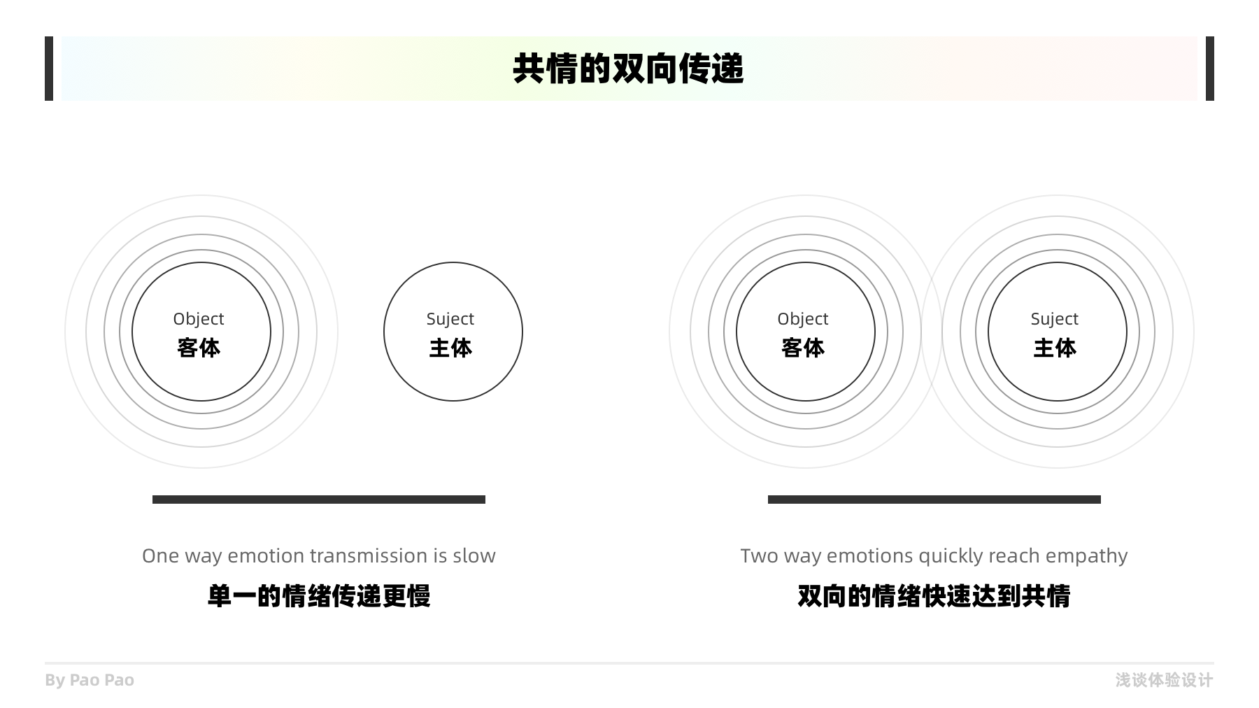 對于“共情”我更多的理解成是兩個或多個載體之間的一種共識一種情緒共鳴,然后再到行為跟思維上的影響。但實際上發生完全的共情是不可能的,有時連我們自己也會做一些無法理解的迷惑行為,并且客體是多樣化的,可以是跨物種的,跨維度的。而我們要做的就是在工作中定義共情的有效范圍,盡可能的與目標用戶產生共情以了解更多信息或需求,然后去定義和構思新的需求與設計。共情很重要,但它不是設計工作中的全部,有效而不要過度的使用也很重要。