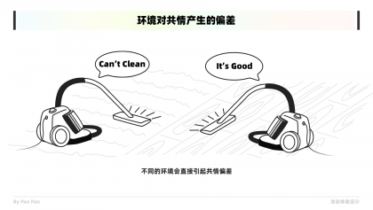 在體驗設計的過程中,我們需要與目標對象構建共情時,一定是有目的有意圖的。以使用性測試為例,往往我們都會設定一些產品測試任務和目標給用戶,再進行觀察和共情。這也將允許我們能夠在同一個或相似的場景事件中發生共情,這樣才能夠獲取到更真實有效的共情。以一個吸塵器產品為例,如果對方是在地毯上測試的,而你是在木質地板的環境下去共情的,那么共情結果肯定是有所出入的。所以構建一個共情目的甚至是環境是有效共情的一個重點之一。