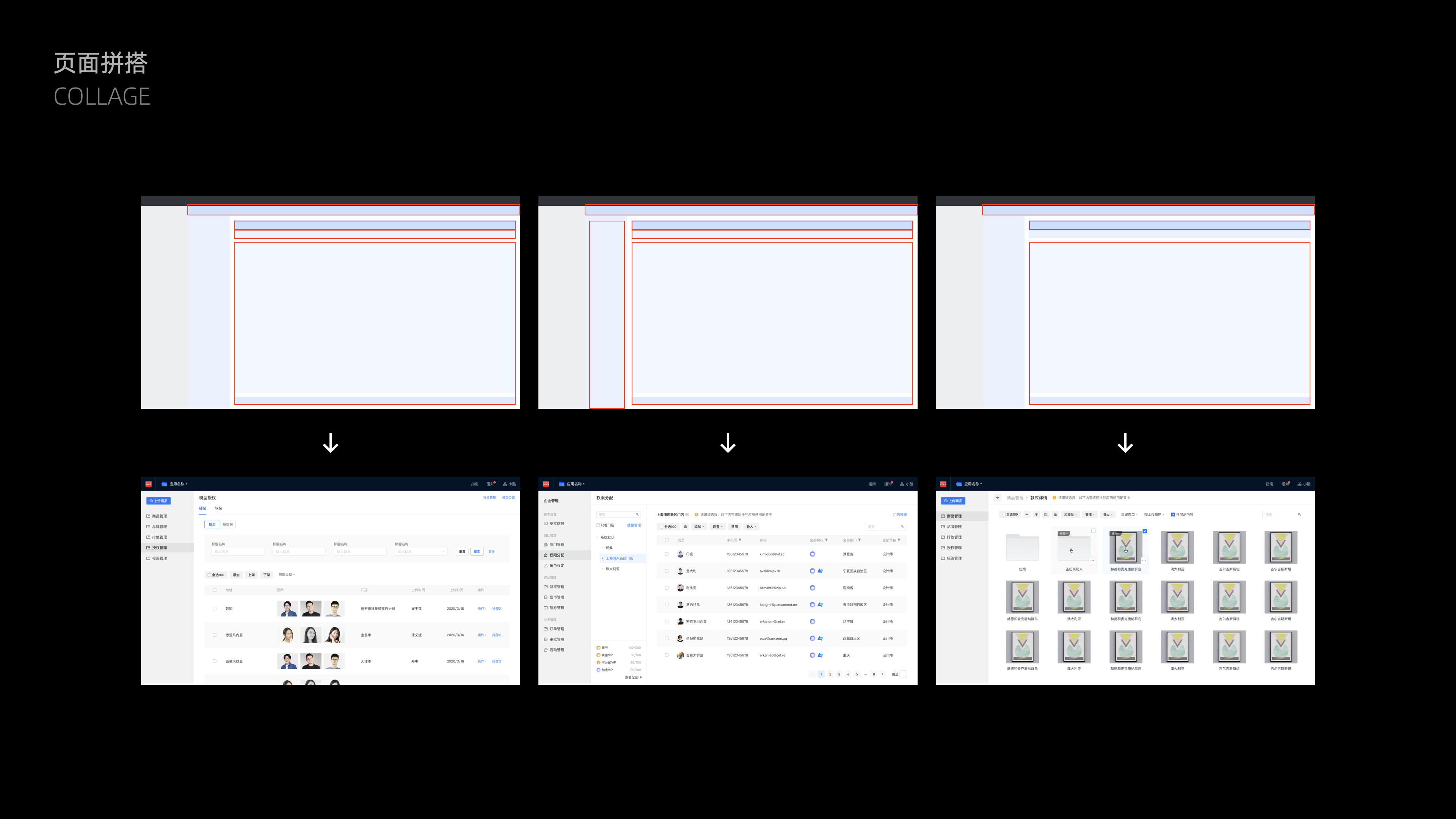 2、其中列表的內容大致區塊分為:頁面標題區、列表操作、列表篩選、列表內容,到這個階段已經可以發現,相同區塊位置就存在不穩定,在后臺系統中可能影響面不會非常大,但對于內容復雜繁多的工具或C端界面就會容易出現找不到的情況。