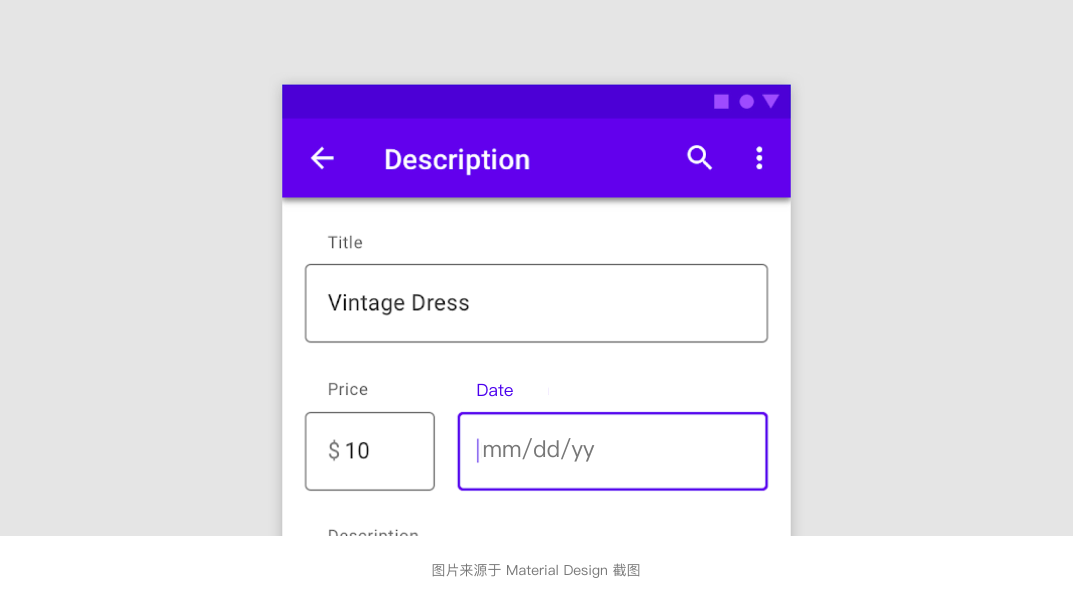 針對上面問題也不是沒有解決方案,在Material Design中有提供針對上面的問題的解決方案,我們這邊暫時(shí)稱其為“浮動標(biāo)簽”,默認(rèn)情況下輸入框內(nèi)顯示占位文本,當(dāng)用戶輸入內(nèi)容以后占位文本浮動到內(nèi)容上方與內(nèi)容左對齊。