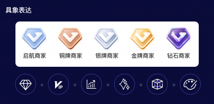設計的基本出發點是幫助業務建設平臺等級模型的表達體系,將業務目標轉化為用戶行為,設計清晰而直觀的商家分層表達體系,將不同商家等級與其對應的特權、服務等信息進行明確的關聯和傳達,以便商家能夠快速理解和辨識商家等級的差異和優勢。