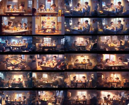以下為部分煉圖輸出展示。(由于AI出圖的隨機(jī)性還是比較強(qiáng)的,因此避免不了消耗一定的時(shí)間進(jìn)行大量的煉圖。)