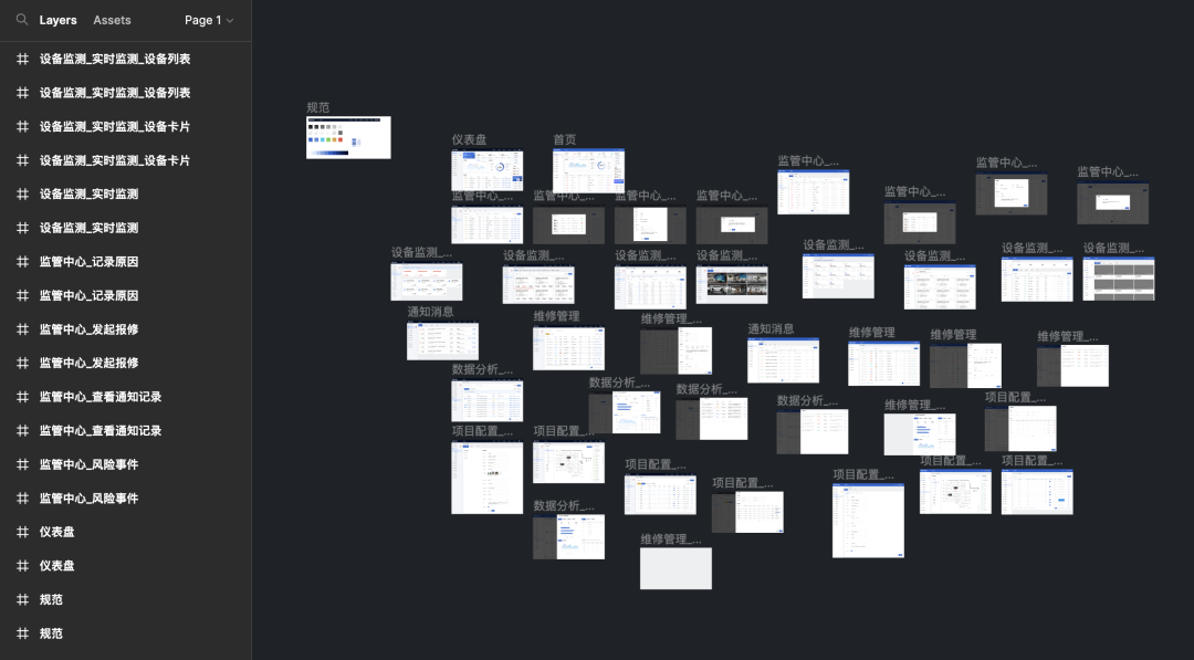 在前期,這個交付的文件需要單獨創建,要從設計工程文件中復制進來排列,但只要完成規范,以及前面一兩個模塊的整理以后,適應了這些布局就可以直接在這個文件中創建新的 Page 進行設計,加快進度。