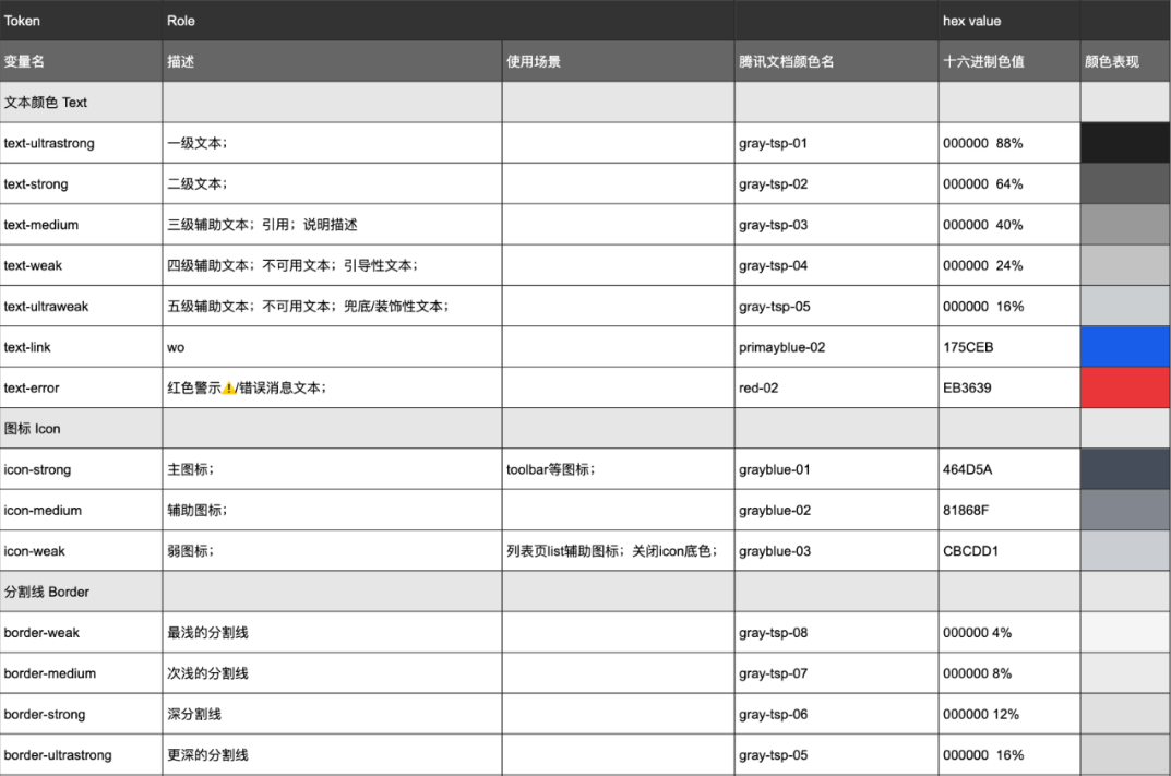 騰訊文檔顏色變量表 網上有很多關于如何使用軟件色彩樣式命名的方式來實現 Token 應用的案例,但隨著 Figma 的 Variables 功能的上線,新的應用方式已經改寫。同時,Variables 可以實現除了色彩以外的更多屬性的更改,從而讓 Token 的應用范圍在設計軟件中進一步擴大(國產軟件跟上也勢在必行)。