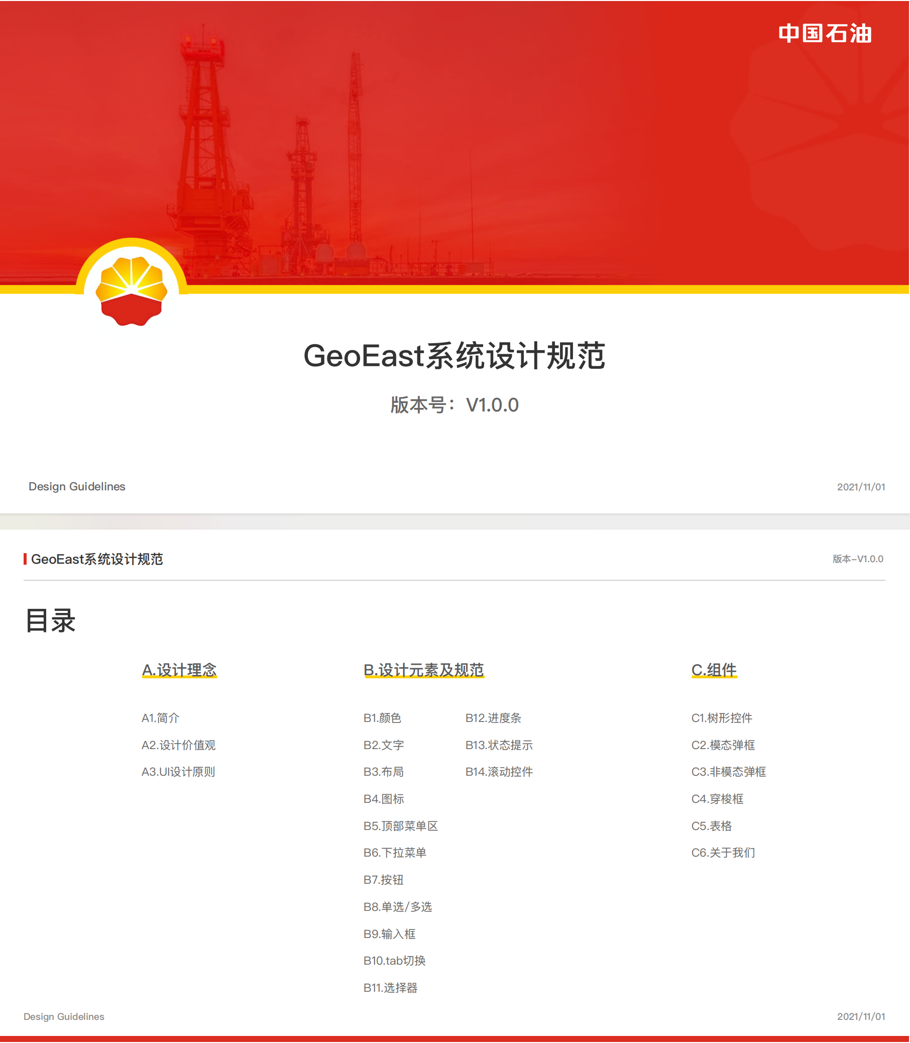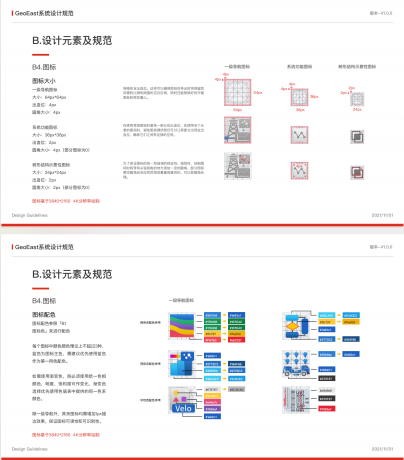下圖是藍藍設計給中國石油設計界面和圖標后,制定的UI規范。