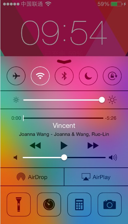之所以說這是 iOS 7 上最美好的改進,因為無論在鎖屏狀態下,抑或在應用當中,只要指尖從屏幕底部向上滑動,即可調出 Control Center。