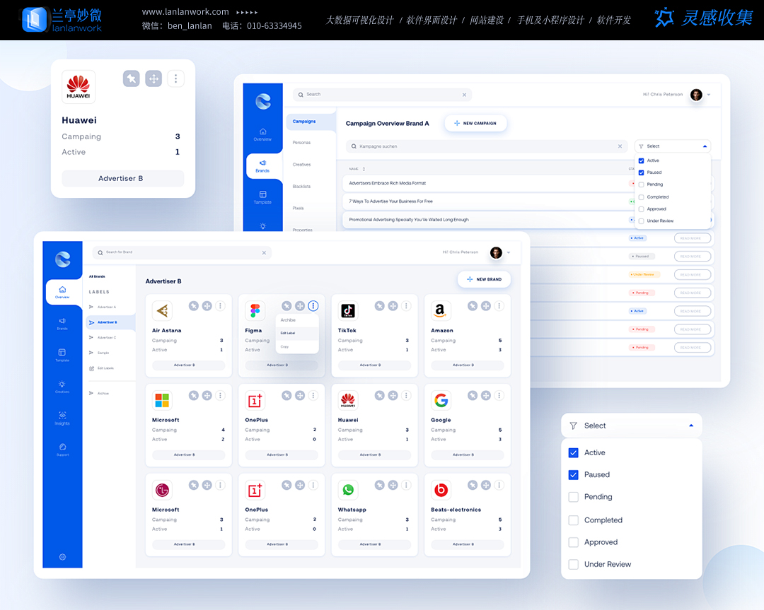 蘭亭妙微(www.lapeinture.cn )是一家專注而深入的界面設計公司,為期望卓越的國內外企業提供卓越的大數據可視化界面設計B端界面設計桌面端界面設計APP界面設計圖標定制用戶體驗設計交互設計UI咨詢高端網站設計平面設計,以及相關的軟件開發服務,咨詢電話:01063334945。我們建立了一個微信群,每天分享國內外優秀的設計,有興趣請加入一起學習成長,咨詢及進群請加藍小助微信ben_lanlan