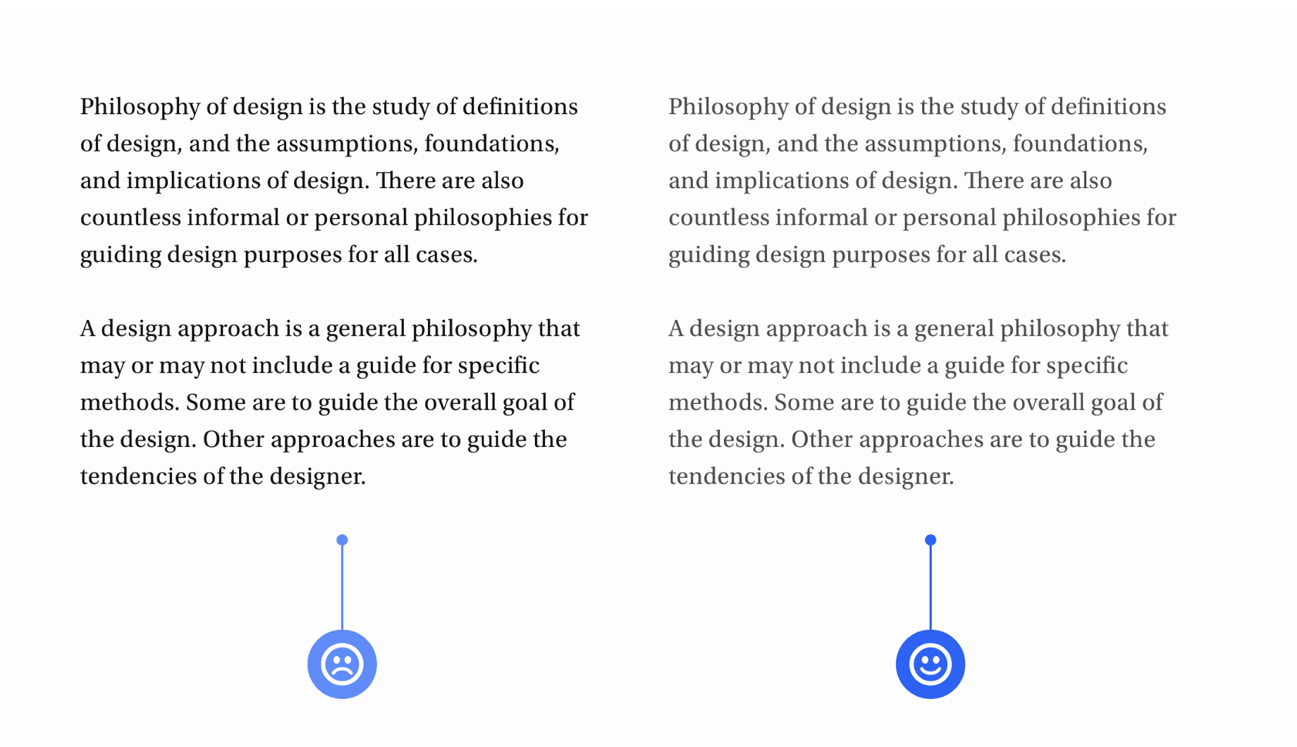 • 調整文本顏色:當處理長篇內容時,大面積的深色粗體字會給人沉重感且顯得跳躍。此時,選擇深灰色(#4F4F4F)等較淺的顏色,能讓文字更易識別,解決這一問題。