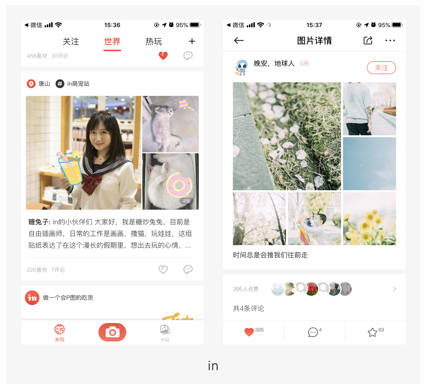 這種布局方式是將幾張圖片拼成一個(gè)矩形,樣式新穎類似雜志的排版,對圖片質(zhì)量要求較高,多應(yīng)用在圖片社交中,如 in。通過獨(dú)特的拼圖方式,能讓圖片展示更具創(chuàng)意和吸引力,增強(qiáng)用戶的視覺體驗(yàn)。