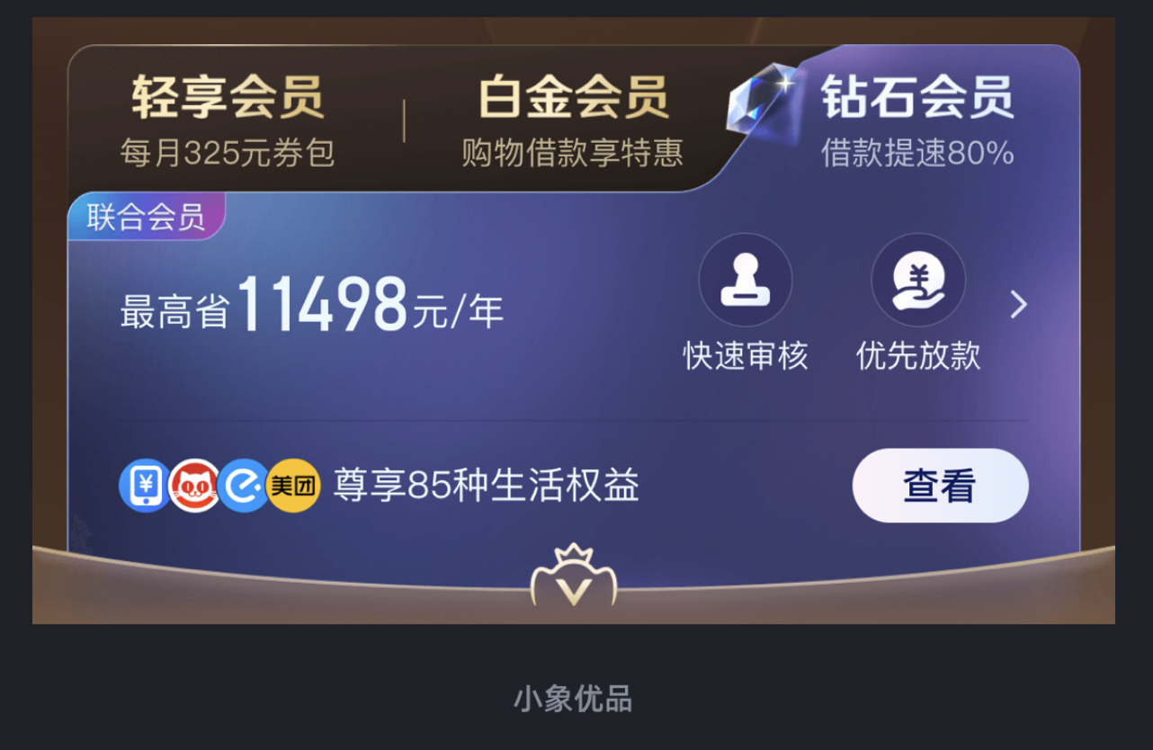會(huì)員卡片的核心需求是 “區(qū)分等級(jí)”,但傳統(tǒng)設(shè)計(jì)多依賴 “顏色差異”(如青銅、白銀、黃金色),缺乏質(zhì)感層次,難以體現(xiàn)會(huì)員的 “尊貴感”。小象優(yōu)品的 PLUS 會(huì)員卡片設(shè)計(jì),卻用 “光影細(xì)節(jié)” 和 “異形結(jié)構(gòu)”,讓等級(jí)區(qū)分更高級(jí)。