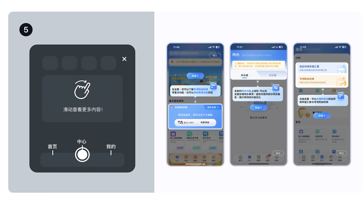 - 例子:稅務 APP 新增 “待辦功能” 后,會在 “待辦” 入口旁彈氣泡,告訴用戶 “這里能處理未辦結事項”,用戶點 “知道了” 就關閉,不影響正常使用;