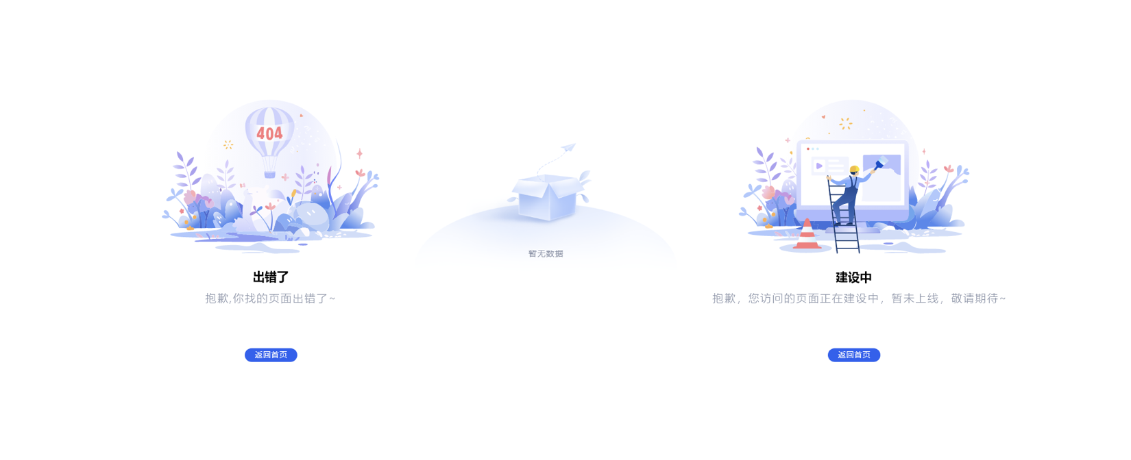- 狀態(tài)提示圖標:緩解用戶焦慮。如 “404 頁面” 的 “迷路小圖標”、“暫無數據” 的 “空文件夾圖標”,讓用戶理解當前狀態(tài);