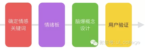 確定情感關(guān)鍵詞 -> 情緒版 -> 腦爆概念設(shè)計 -> 用戶驗證