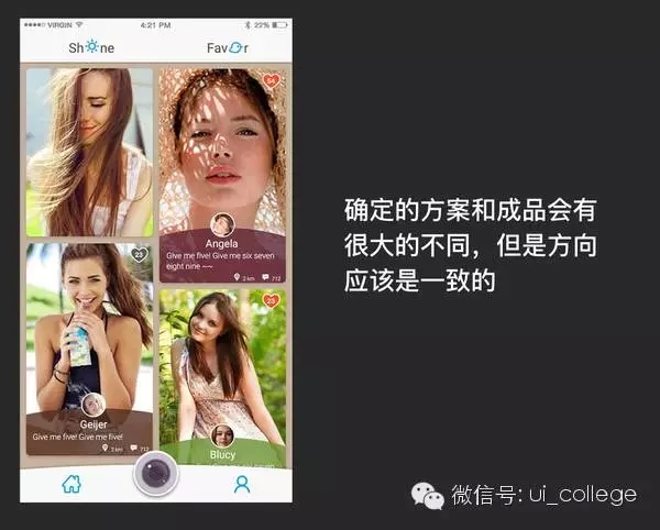 經(jīng)過用戶驗證后我們的想法就更明確了,加上之前的一步步推演我們確定了方案2就是我們整個App最終的設(shè)計風(fēng)格方向,當(dāng)然這不是最終效果圖,而是確定了后我們的設(shè)計師就會根據(jù)整個方向去完善細節(jié)輸出,真實的定稿還需要考量很多因素。