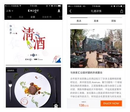 當然,如果不是內容為主的App,沒有太多的排版需求的話,不妨可以像iFashion,或者又是飯本出品的精選限量美食App—ENJOY—這樣,通過直接了當的黑線分割,也是不失干脆利落。