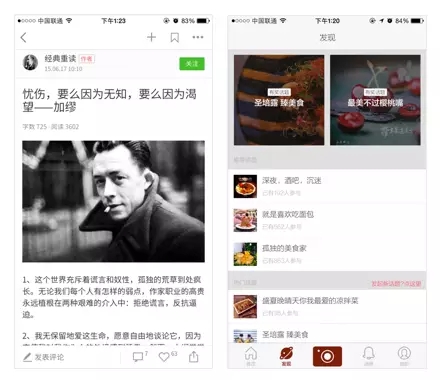 作為一個「交流故事,溝通想法」的的寫作平臺App,簡書為了優化閱讀體驗,選擇了思源黑體作為內嵌字體,使用戶發布的不管是簡體中文、繁體中文、還是日文韓文,都能有比較理想的表現。食色的產品概念是和「生活家」們一起,發現與分享城市中的美食,所以選擇了細膩精致的方正蘭亭纖黑作為主要的界面字體。用戶第一次使用,就能感受它與其他產品在氣質上的不同。