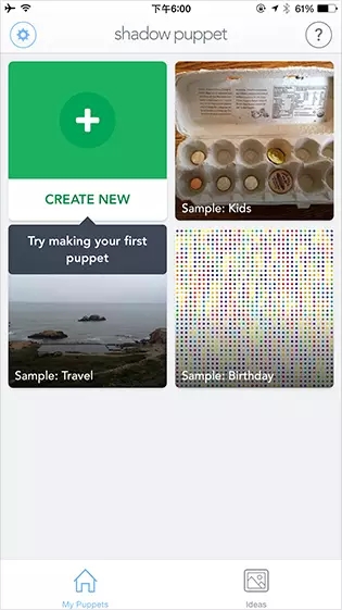 Shadow Puppet可以把照片和視頻剪輯結(jié)合聲音、貼紙等制作成動(dòng)畫,制作簡(jiǎn)單,被譽(yù)為視頻版的PPT。它的首頁(yè)預(yù)置了展示用的視頻樣本,用戶可以通過觀看視頻案例對(duì)Shadow Puppet的視頻制作有感性的認(rèn)知。