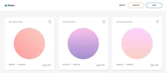 https://webgradients.com/, 180種漸變方案供你選擇,還可以直接復制CSS樣式應用到網頁中。