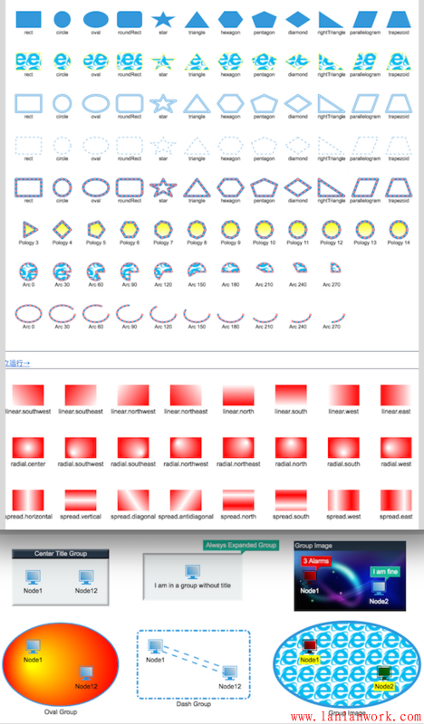 剛才的例子我們提到了一個 Group 類型,這個類型圖元節(jié)點在 GraphView 上顯示成了組合效果,可雙擊展開合并,可跟隨著孩子節(jié)點的位置大小變化和自適應變動,除了 Node、Edge、Group 外,HT 還提供了 Shape、Polyline、Grid、SubGraph 等多種圖元類型,這些圖元類型都具是有針對性的展示效果,以滿足各種行業(yè)的基本圖元需求:http://www.hightopo.com/guide...