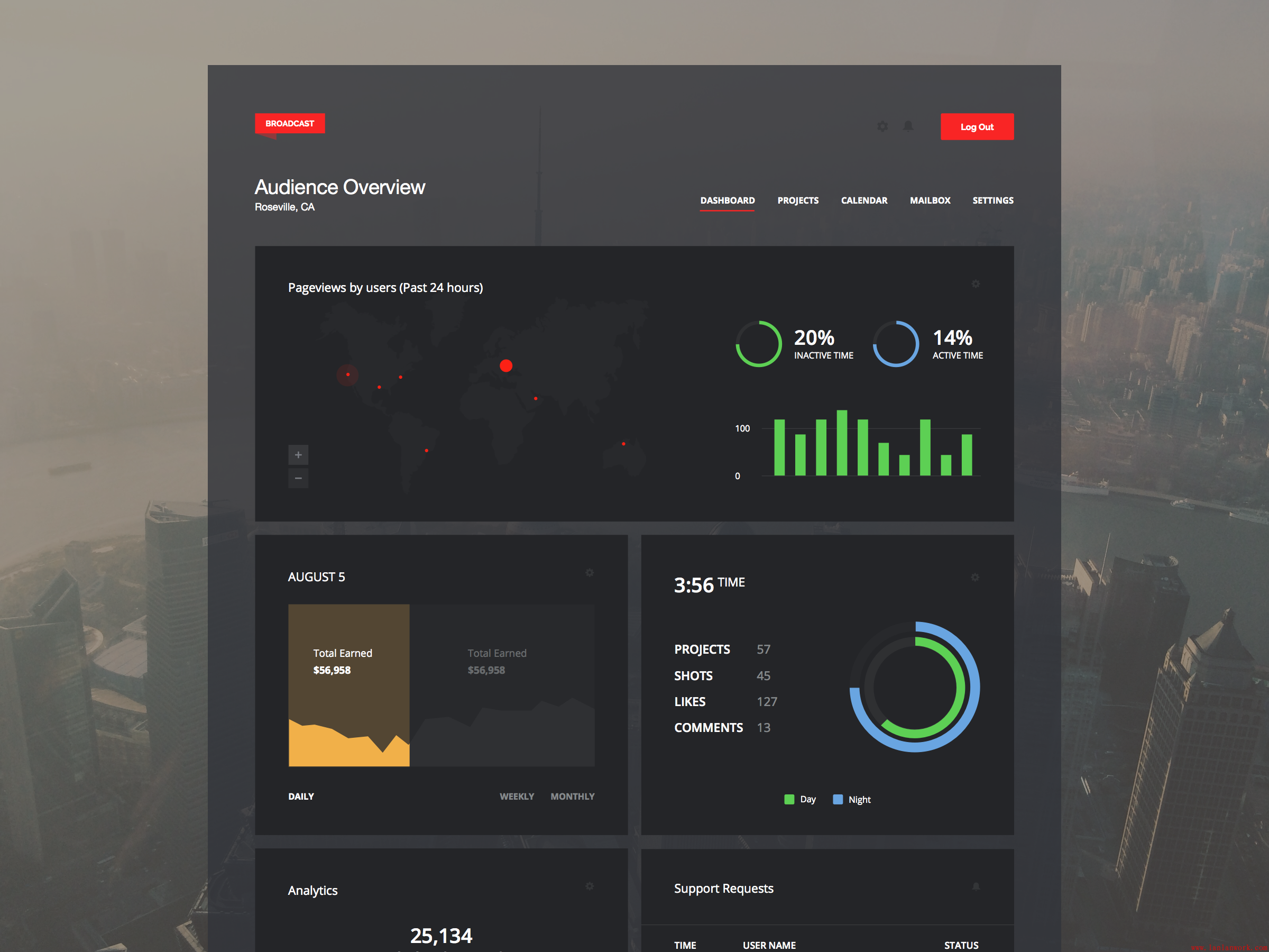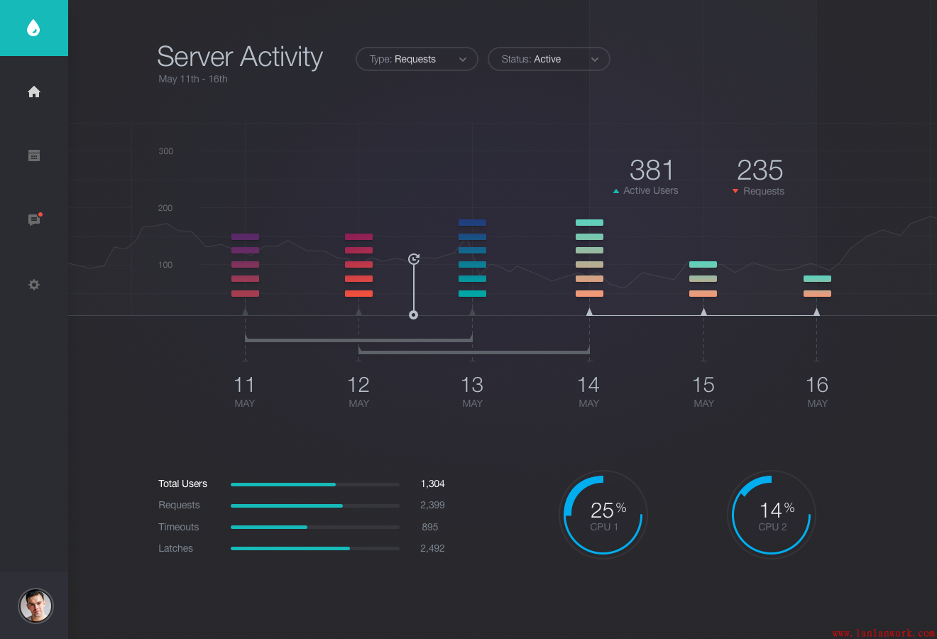 今天跟大家分享的是深色背景的網站界面,深色背景穩重大氣,體現科技感。在界面布局方面簡潔清晰,同時界面中的表格、按鈕、標簽、圖表等控件精致美觀,不管是做web端網頁、大屏界面,還是手機app,都可以借鑒。