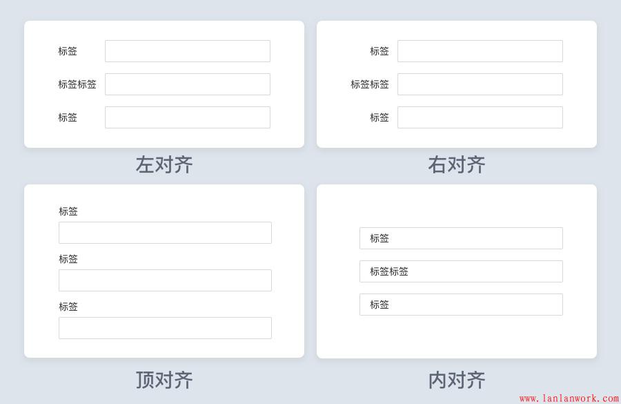 標簽對齊方式有左對齊、右對齊、頂對齊、內對齊,都有各自優缺點,不同場景酌情使用。