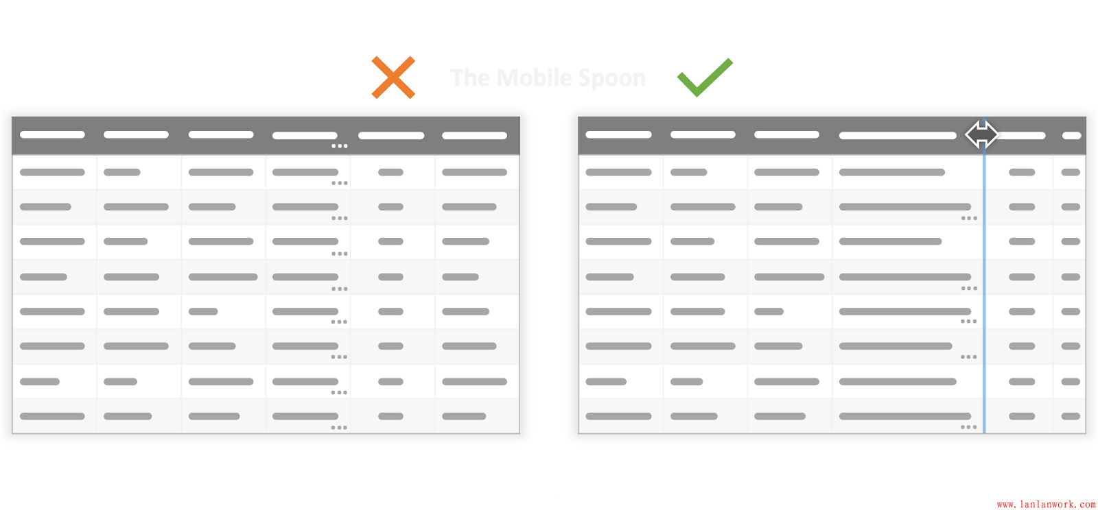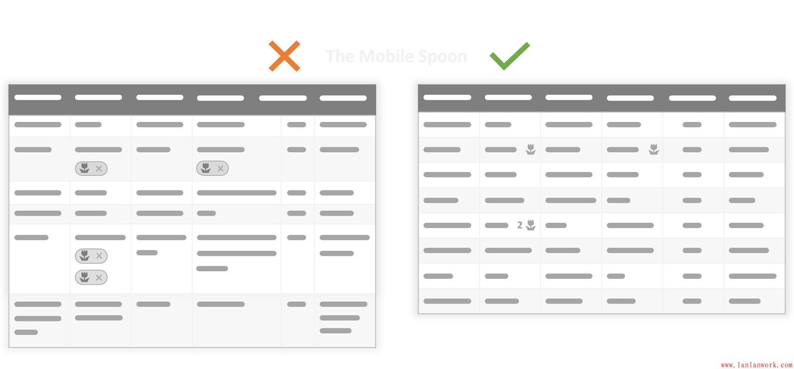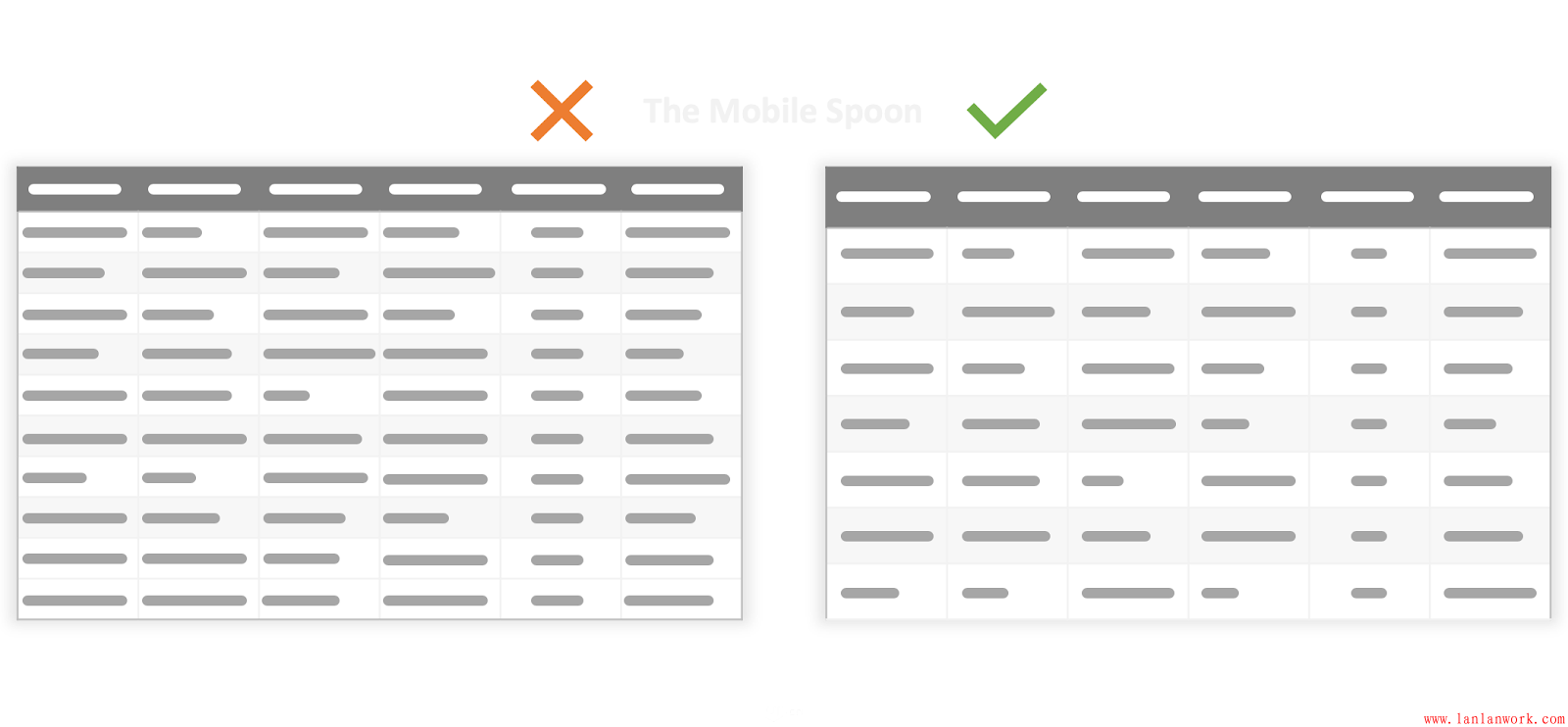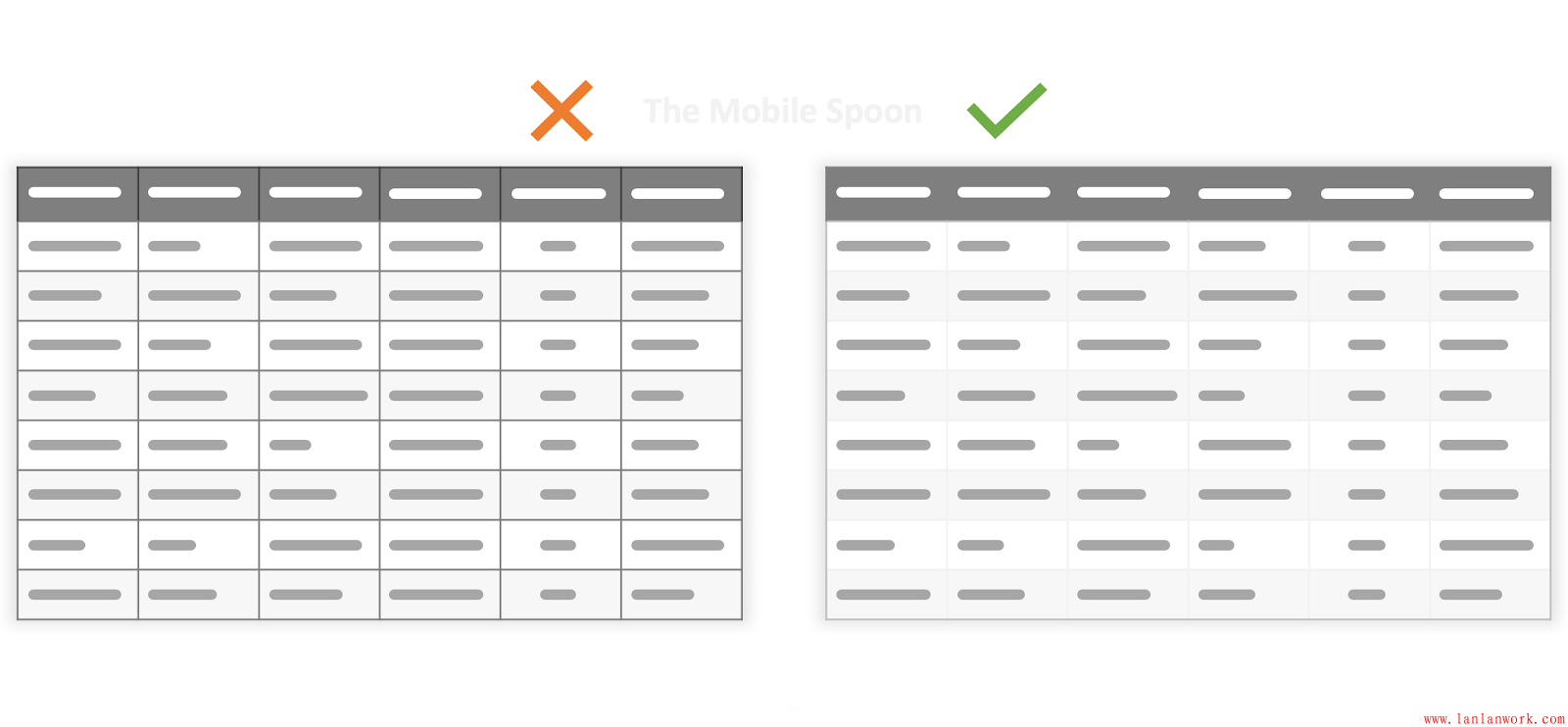 表格和網格是體現結構化信息的,但是,當表格的列寬、行高不同時,就會變得混亂,信息也就會變得沒有體系。