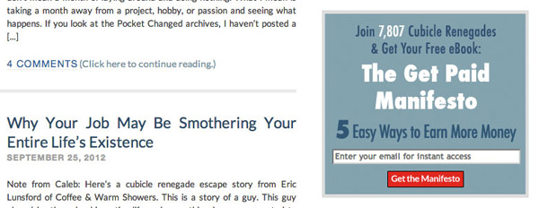 Pocket Changed的訂閱表單是個不錯的例子,他們向訪問者展示了當(dāng)前已有多少人進(jìn)行了訂閱下載;此外,他們也非常簡單直接的讓訪問者了解到在填寫郵箱后可以得到什么。如果可以再加入一些來自真實訂閱用戶的贊許反饋,這個表單的轉(zhuǎn)化效果會更好。