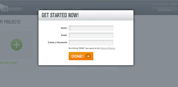 在對表單進(jìn)行了充分的簡化之后,我們還可以試著通過一些設(shè)計技巧讓填寫表單的環(huán)節(jié)看上去更輕量。在這方面,我個人最喜歡的一個案例來自原型制作工具InVision的注冊表單。他們使用浮層的形式呈現(xiàn)表單,作為訪問者,我可以感知到,當(dāng)我填寫完成之后就可以立刻回到之前的界面繼續(xù)應(yīng)用流程。