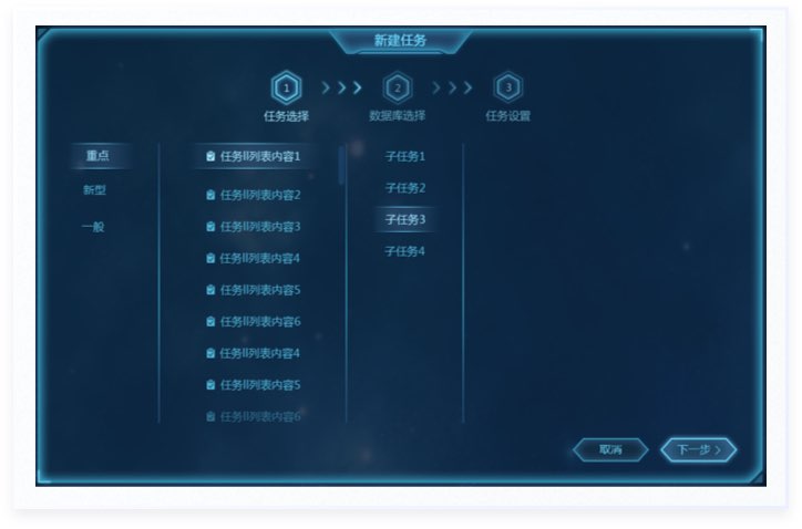 視覺方面使用大屏常用的深色背景,主色采用藍色配色,通過整體排版,元素的設計,來凸顯科技感。頁面布局方面,采用模塊化布局,便于區(qū)分信息類別;扁平化的視覺元素+框式設計,最大程度地減少頁面元素的干擾,提升頁面內容承載量。