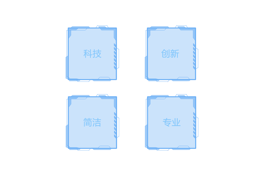 界面整體采用深藍背景,通過背景圖案展示界面的縱深感。富有科技感的邊框和線條來凸顯界面的科技感。數據展示和控件在主色調的基礎上運用一些鮮明色作為點綴,即豐富了頁面也突出了要展示的信息。